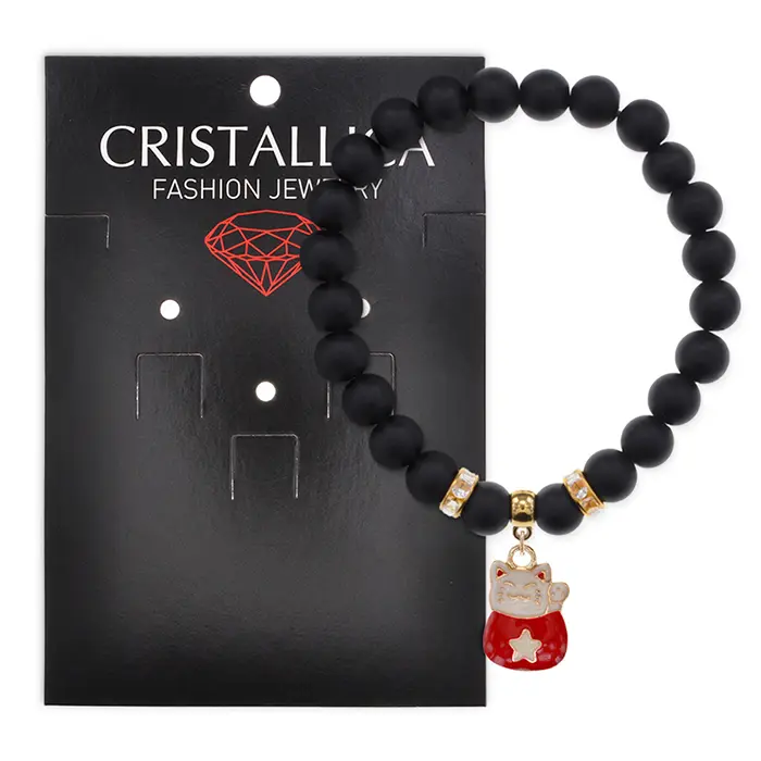 Браслет Манеки-Неко (защита дома) синт.кам. Шунгит 8мм BS-CR-1014