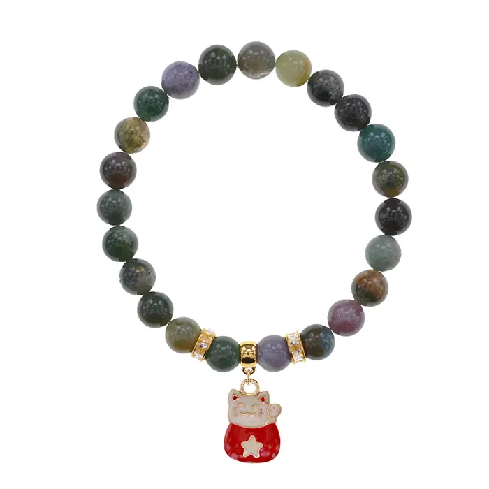 Браслет Манеки-Неко (защита дома) нат.кам. Яшма 8мм BS-CR-1015