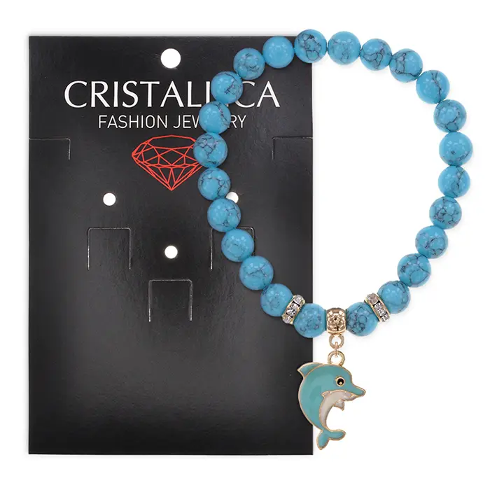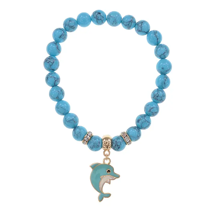 Браслет Дельфин (добро, независимость, защита) синт.кам. Бирюза 8мм BS-CR-1025