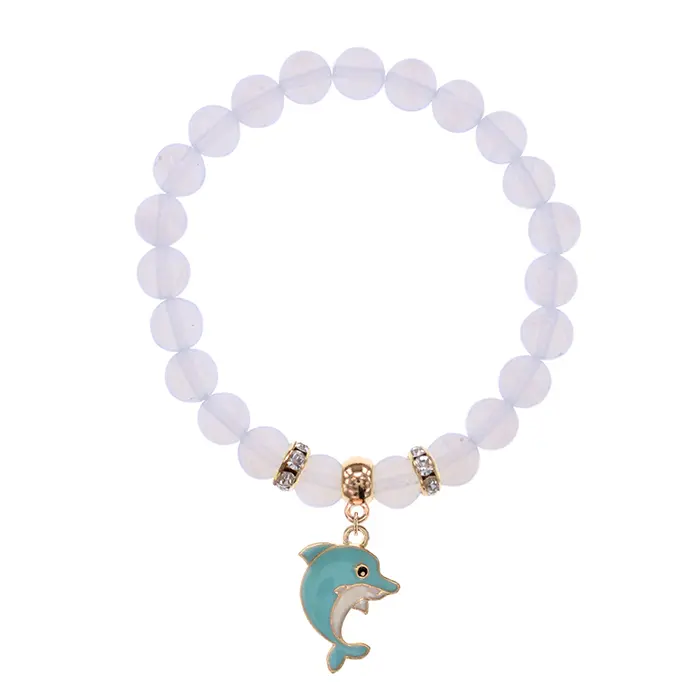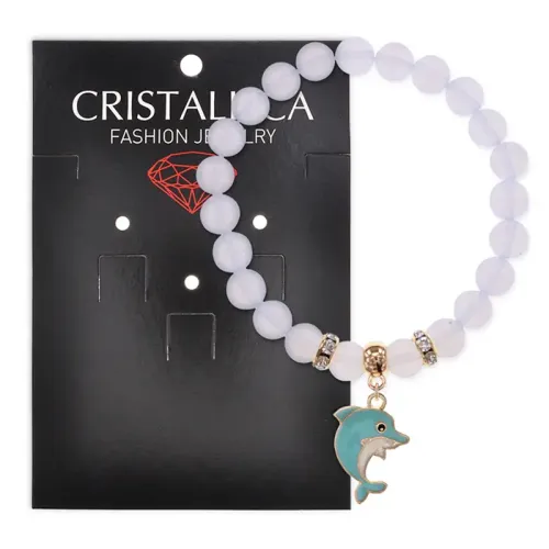 Стрейч-браслет из коллекции Cristallica с бусинами из натурального лунного камня и подвеской в виде дельфина.
