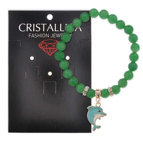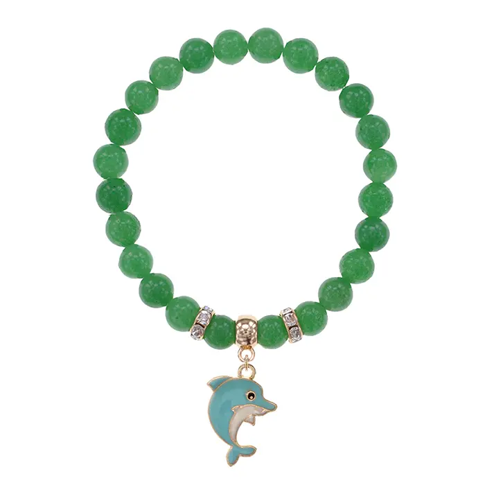 Стрейч-браслет из натурального нефрита с подвеской в виде дельфина.