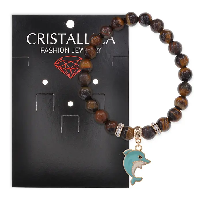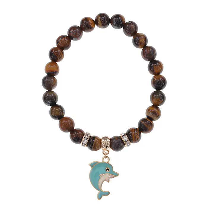 Браслет Дельфин (добро, независимость, защита) нат.кам. Тигровый глаз 8мм BS-CR-1039