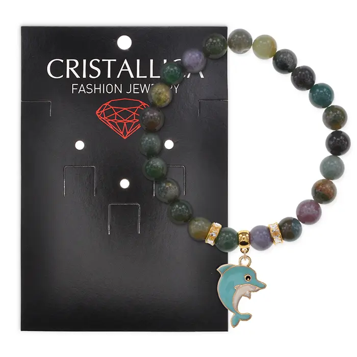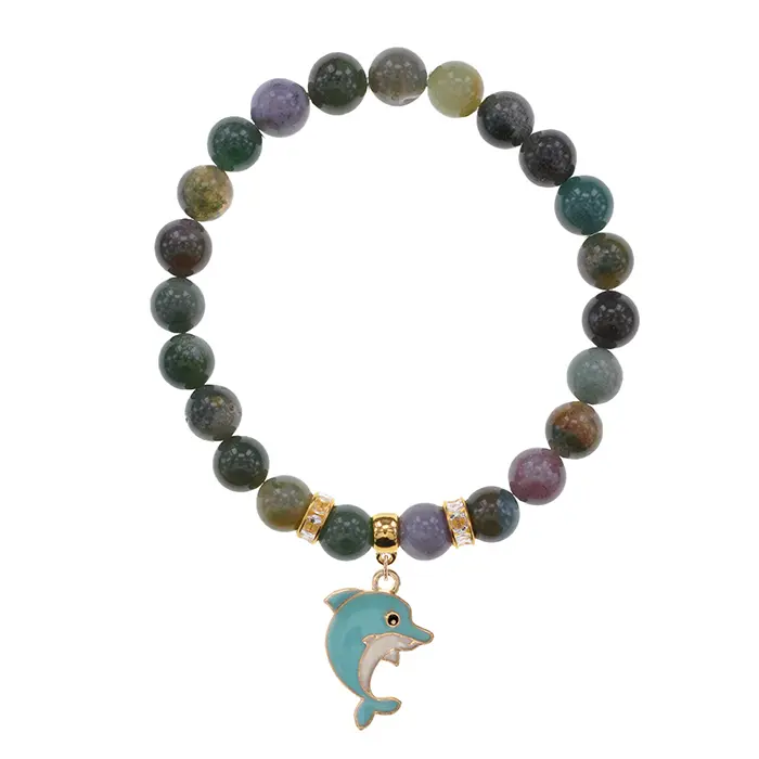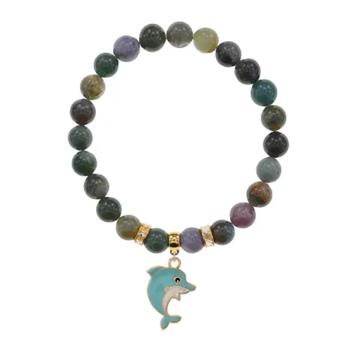 Стрейч-браслет из натуральной яшмы с подвеской в виде дельфина.