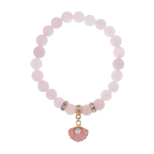 Стрейч-браслет из натурального розового кварца с бусинами диаметром 8 мм и фурнитурой светлого золота.