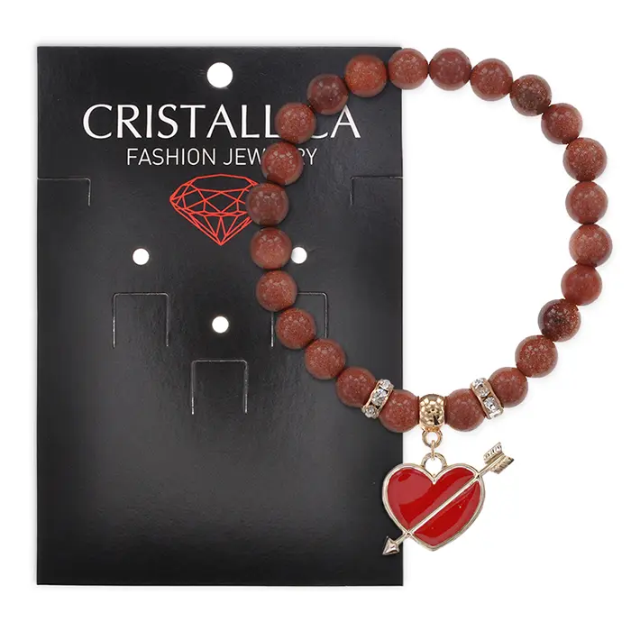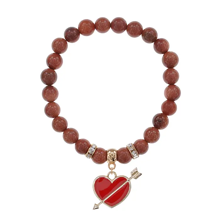 Браслет Сердце со стрелой (любовь) синт.кам. Корич. авантюрин 8мм BS-CR-1081