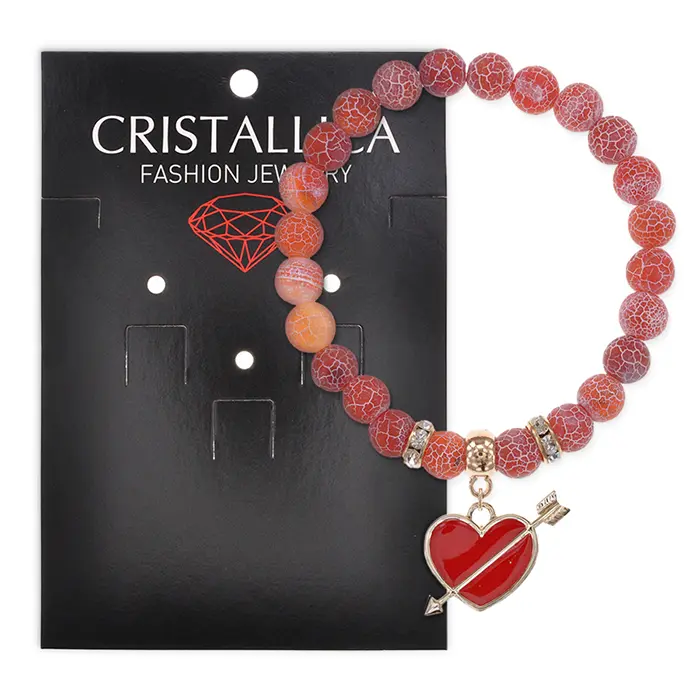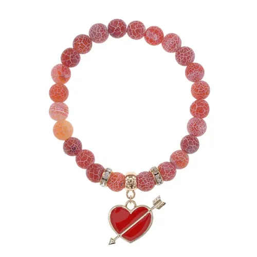 Браслет Сердце со стрелой (любовь) нат.кам. Африканский агат 8мм BS-CR-1084