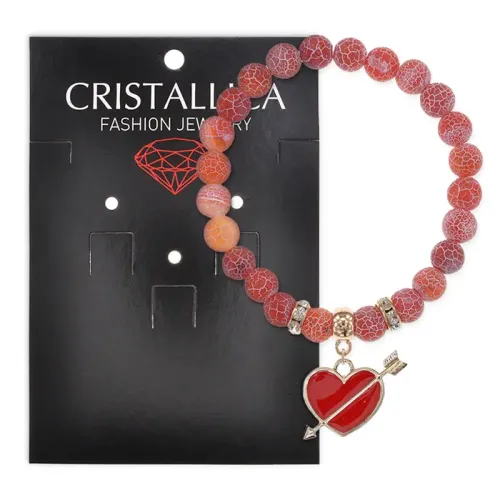 Стрейч-браслет из натурального африканского агата с подвеской в виде сердца со стрелой и стразами.