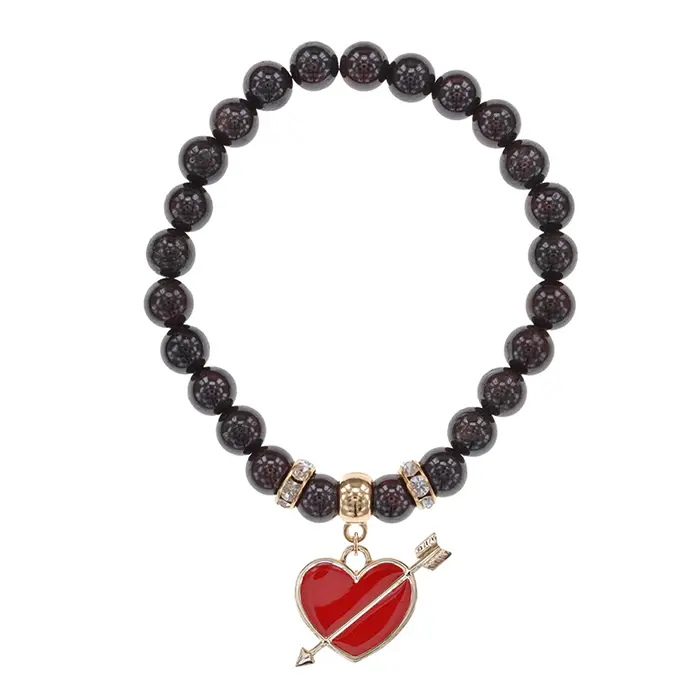 Браслет Сердце со стрелой (любовь) нат.кам. Гранат 8мм BS-CR-1086
