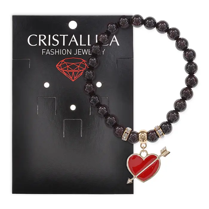 Браслет из натурального граната с подвеской в форме сердца со стрелой.