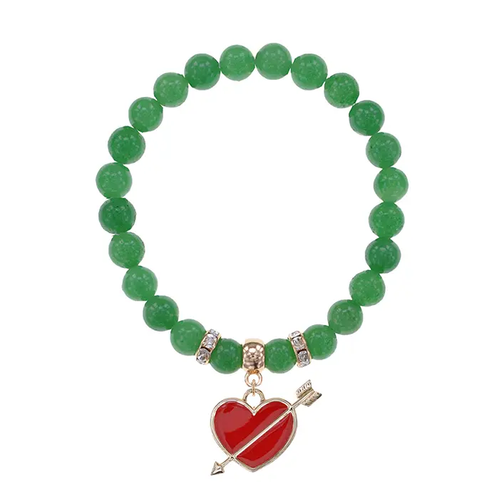 Браслет Сердце со стрелой (любовь) нат.кам. Нефрит 8мм BS-CR-1093