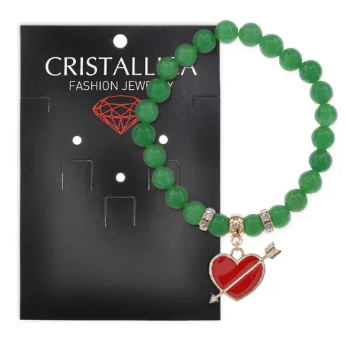 Стрейч-браслет из натурального нефрита с подвеской в виде сердца со стрелой.