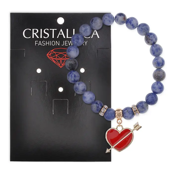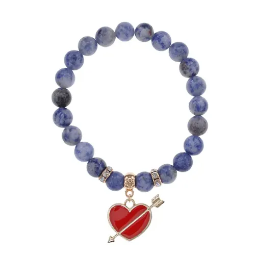 Браслет из натурального камня содалит с подвеской в виде сердца, пронзённого стрелой.