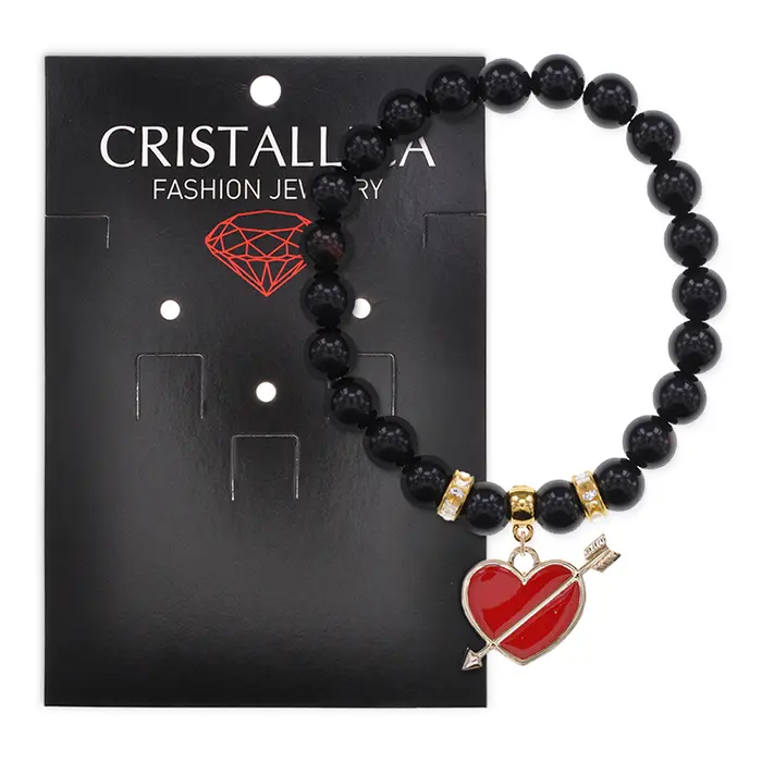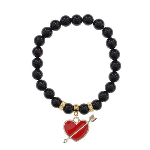 Браслет Сердце со стрелой (любовь) нат.кам. Черный агат 8мм BS-CR-1103
