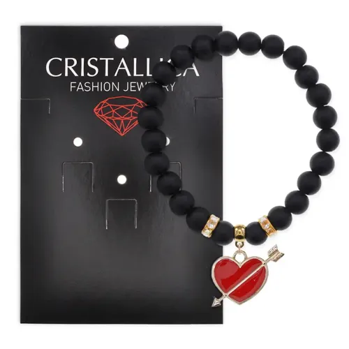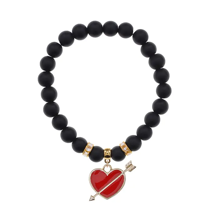 Браслет Сердце со стрелой (любовь) синт.кам. Шунгит 8мм BS-CR-1104