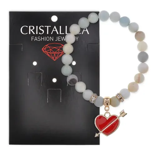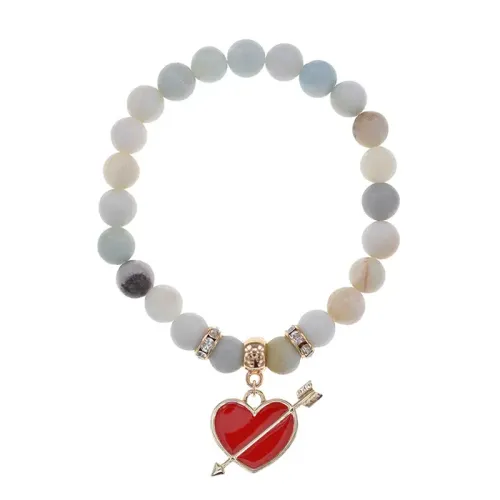 Стрейч-браслет из натурального амазонита с подвеской в виде сердца со стрелой.