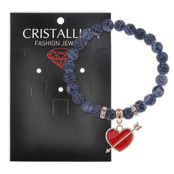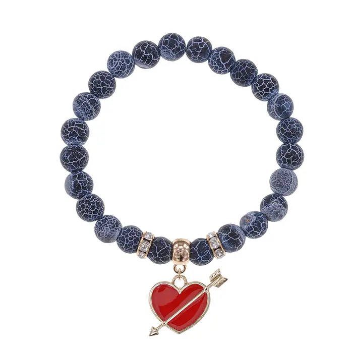 Браслет Сердце со стрелой (любовь) нат.кам. синий Африк. агат 8мм BS-CR-1107