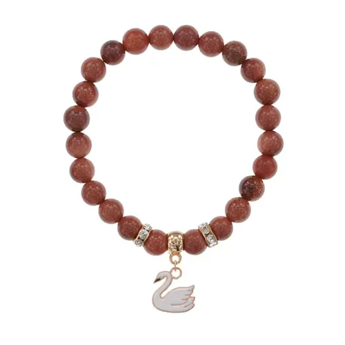 Браслет из коричневого авантюрина с подвеской в виде лебедя.