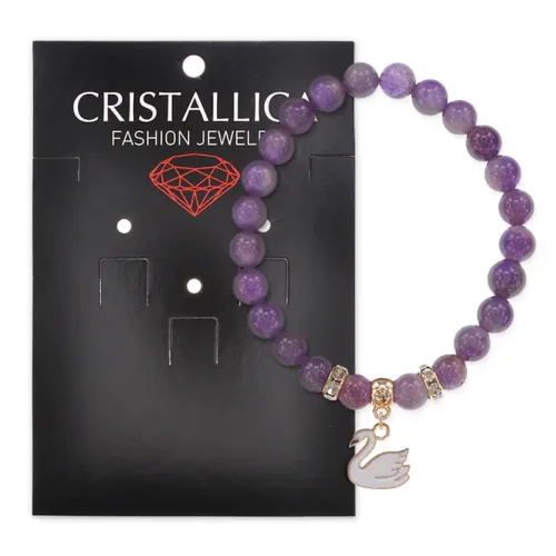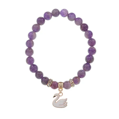 Браслет Лебедь (чистота, совершенство) нат.кам. Аметист 8мм BS-CR-1173