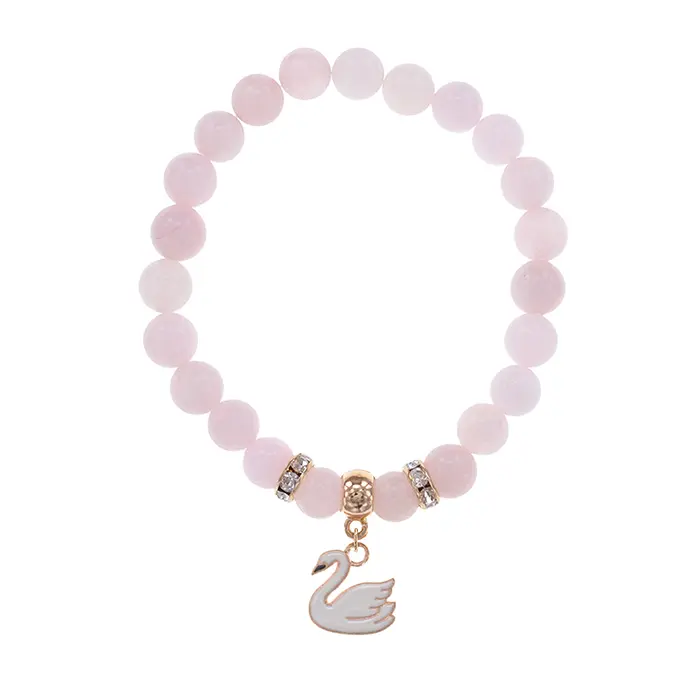 Браслет Лебедь (чистота, совершенство) нат.кам. Розовый кварц 8мм BS-CR-1185