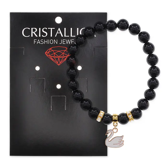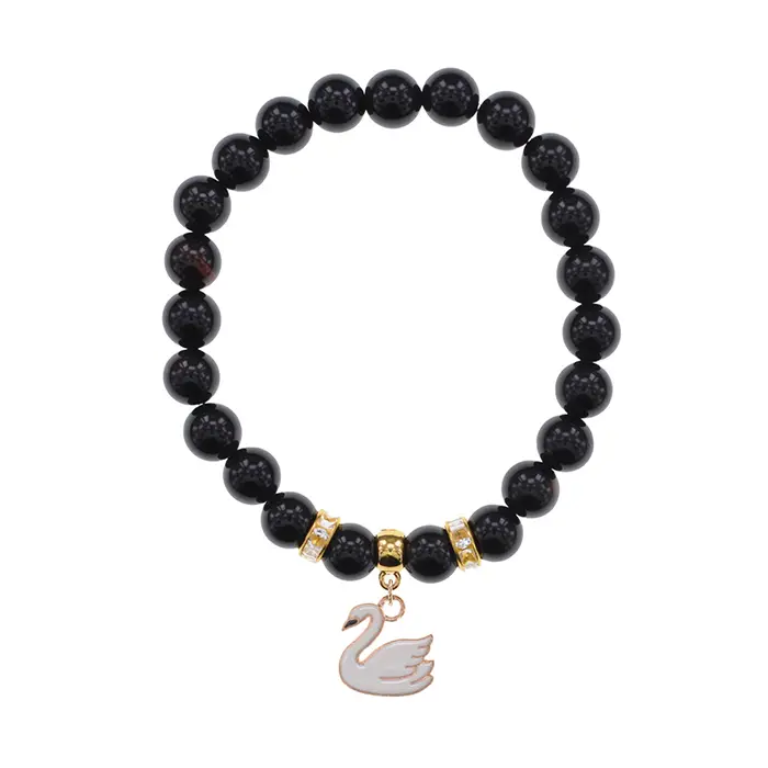 Браслет Лебедь (чистота, совершенство) нат.кам. Черный агат 8мм BS-CR-1193