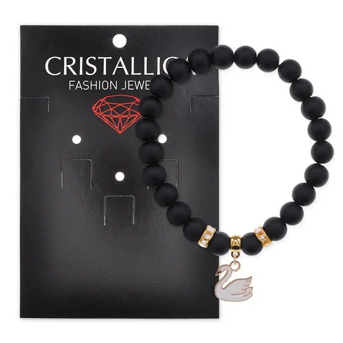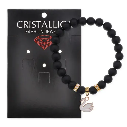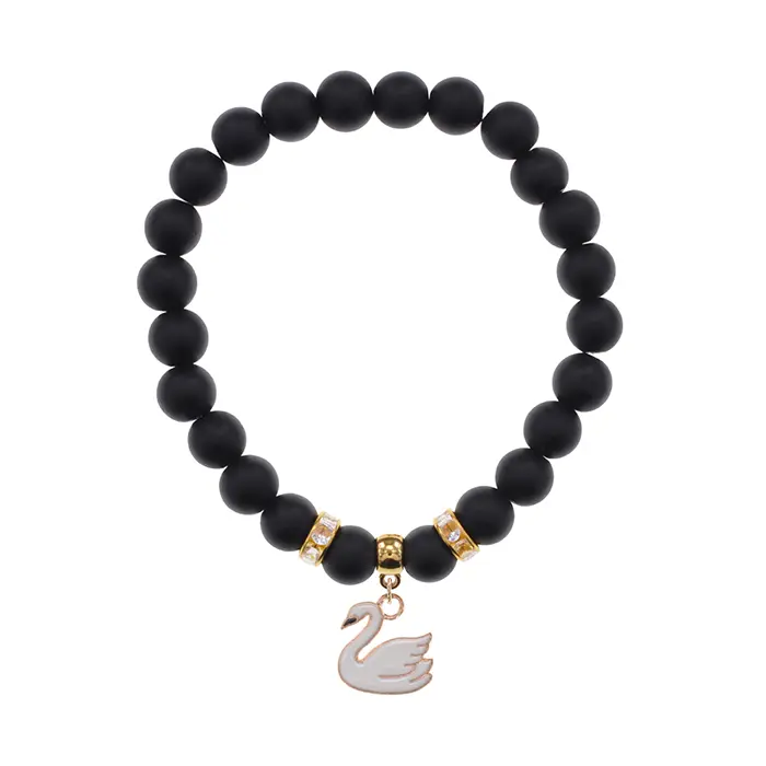 Браслет Лебедь (чистота, совершенство) синт.кам. Шунгит 8мм BS-CR-1194