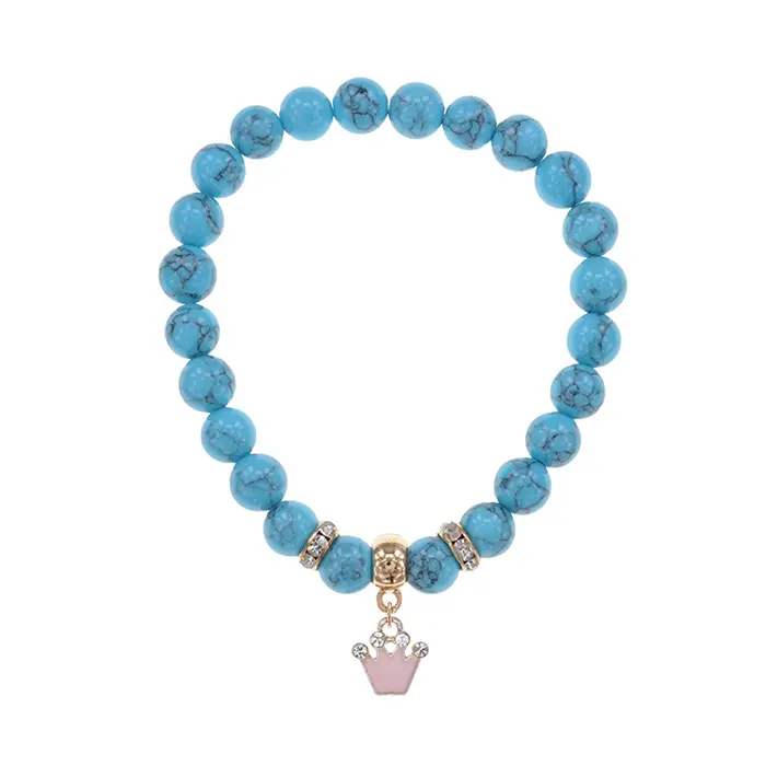 Браслет Корона (молодость и красота) синт.кам. Бирюза 8мм BS-CR-1205