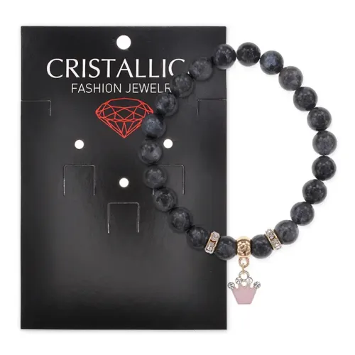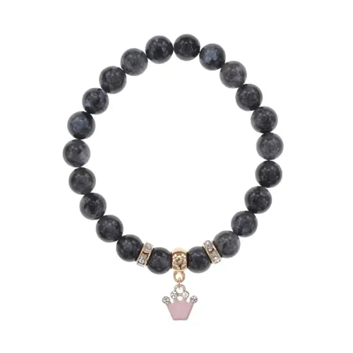 Стрейч-браслет из натурального камня лабрадора с фурнитурой в виде короны.