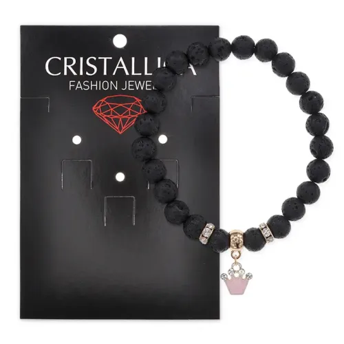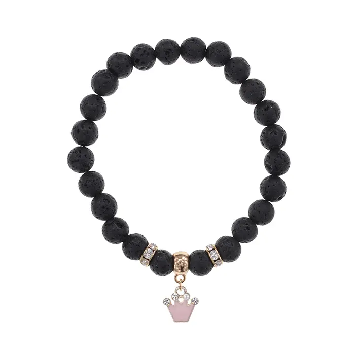 Стрейч-браслет из натурального камня лавы с фурнитурой в виде короны.