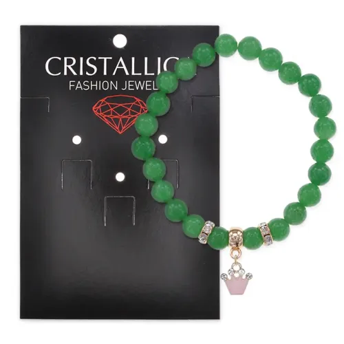 Стрейч-браслет из натурального нефрита с фурнитурой в виде короны.