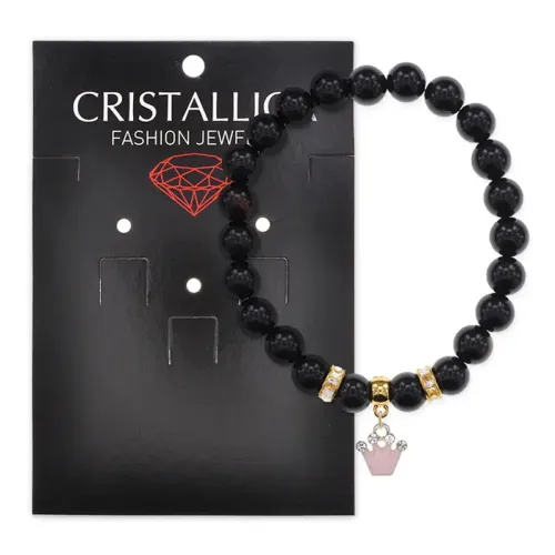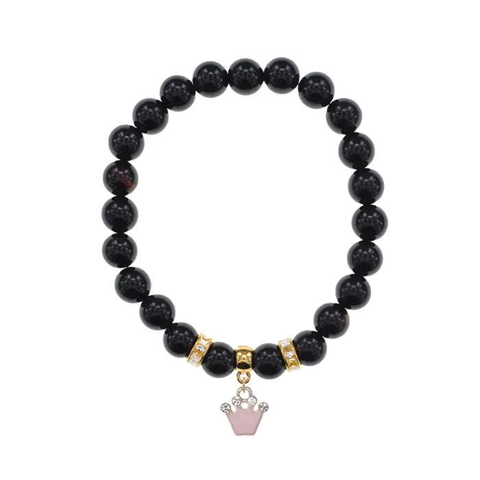 Стрейч-браслет из натурального черного агата с фурнитурой в виде короны.