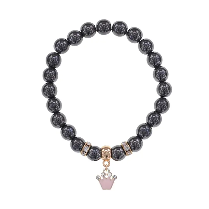 Браслет Корона (молодость и красота) синт.кам. Гематит (не магнит.) 8мм BS-CR-1228