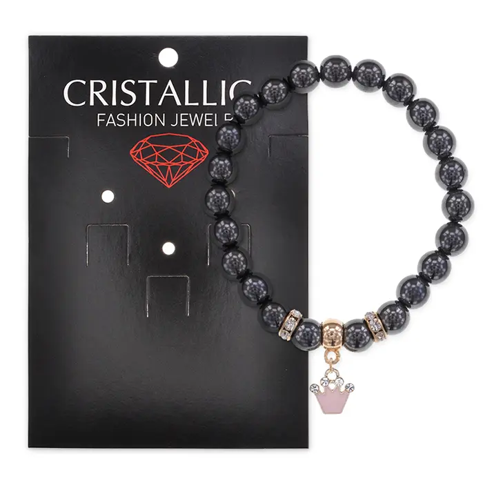 Размеры и комплектация: Диаметр бусин 8 мм, внутренний диаметр браслета около 5.5 см. Упаковка — прозрачный пакет с еврослотом на подложке Cristallica.