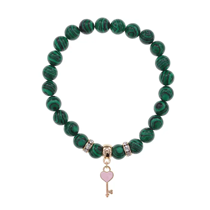 Браслет Ключ Сердце (счастье, любовь) синт.кам. Малахит 8мм BS-CR-1272