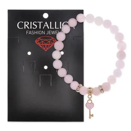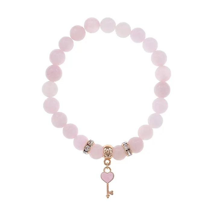 Браслет Ключ Сердце (счастье, любовь) нат.кам. Розовый кварц 8мм BS-CR-1275