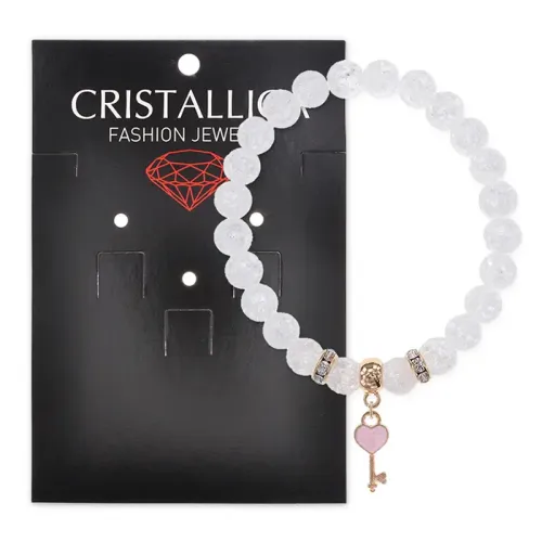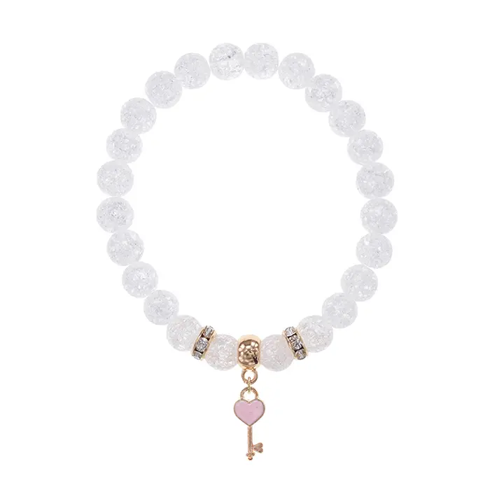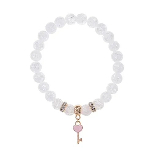 Браслет Ключ Сердце (счастье, любовь) синт.кам. Сахарный кварц 8мм BS-CR-1276