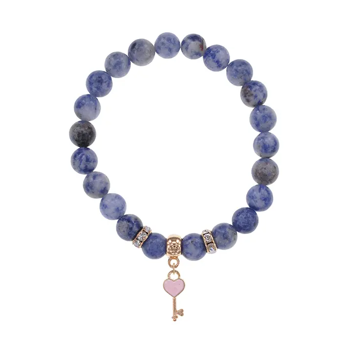 Стрейч-браслет из натурального содалита с подвеской в виде ключа и сердца.