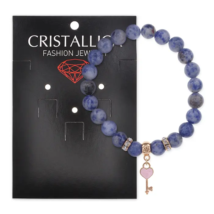 Браслет Ключ Сердце (счастье, любовь) нат.кам. Содалит 8мм BS-CR-1278