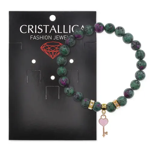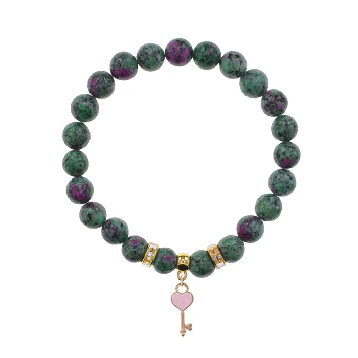 Браслет Ключ Сердце (счастье, любовь) синт.кам. Цоизит 8мм BS-CR-1282