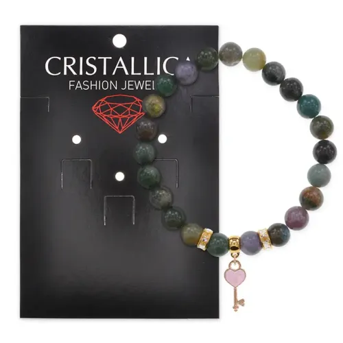 Стрейч-браслет из натуральной яшмы с подвеской в виде ключа и сердца.