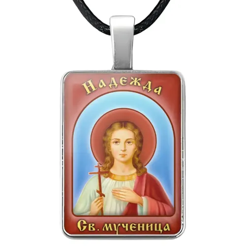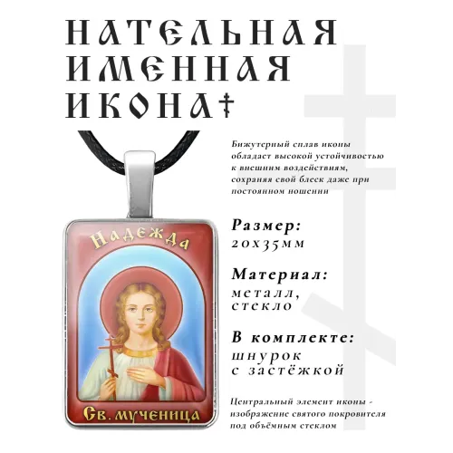 Нательная иконка из бижутерного сплава с объёмной стеклянной линзой.