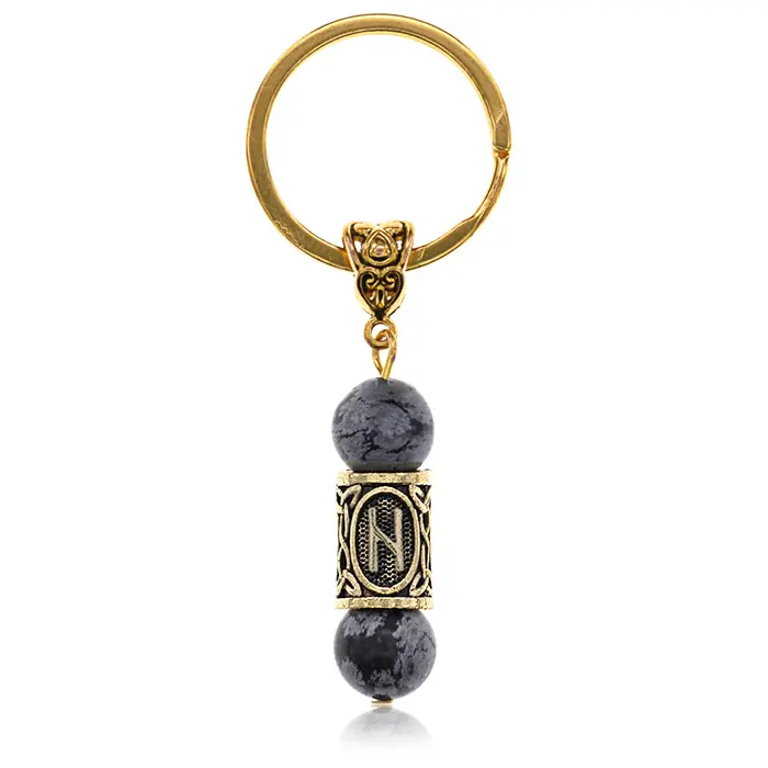 Брелок-амулет Хагалаз из натурального обсидиана и бижутерного сплава с покрытием под золото.