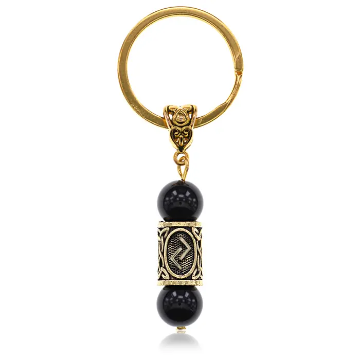 Брелок-амулет из натурального камня и бижутерного сплава с руническим символом Йера.