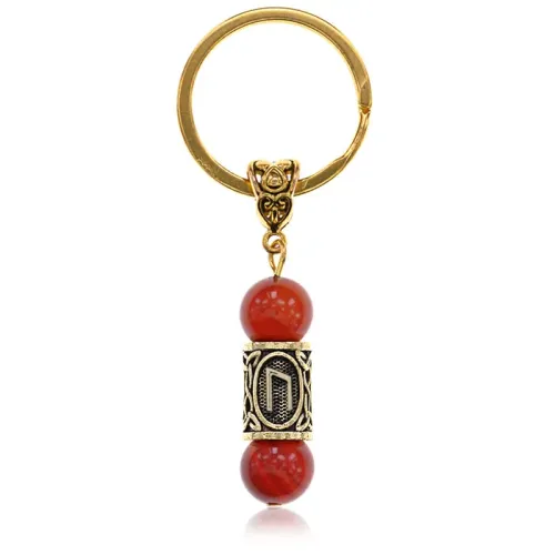 Брелок-амулет из натурального сердолика и бижутерного сплава с руническим символом Уруз.