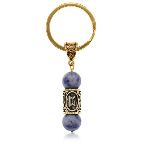 Брелок-амулет Перт из натурального камня содалит и бижутерного сплава с золотым покрытием.