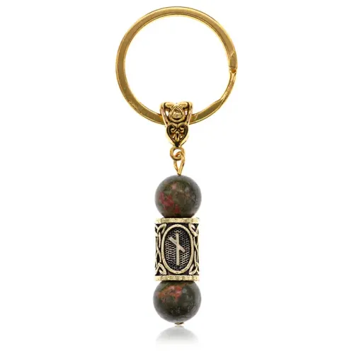 Брелок-амулет с руническим символом Наутиз из натурального камня унакит и бижутерного сплава.
