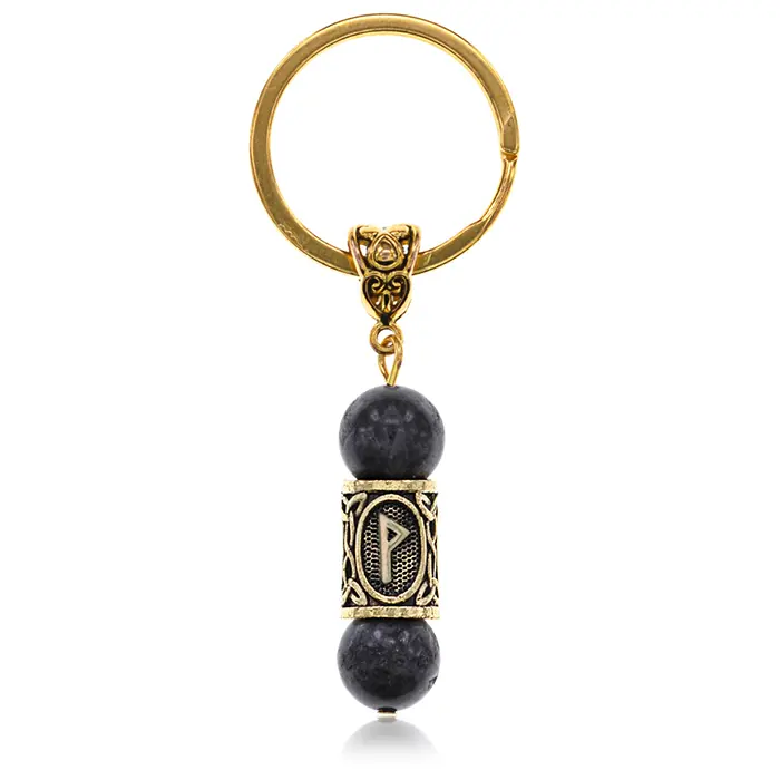 Брелок-амулет Вуньо из натурального камня лабрадор и бижутерного сплава с покрытием под золото.