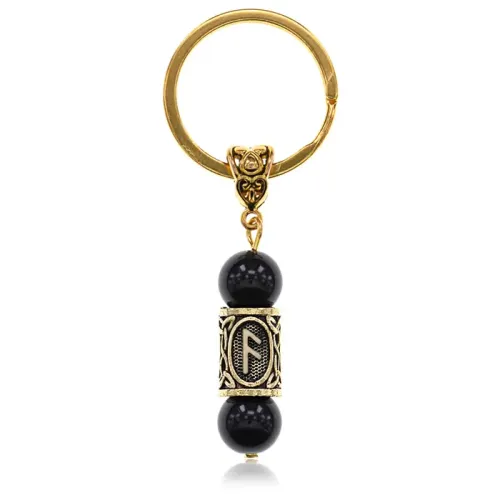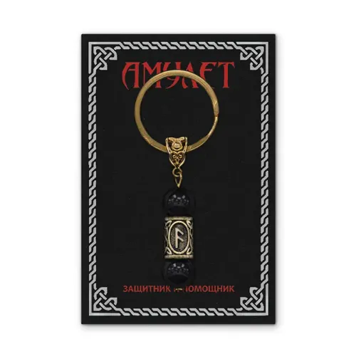 Брелок-амулет Ансуз, нат.камень Черный агат 10мм BKN2-47