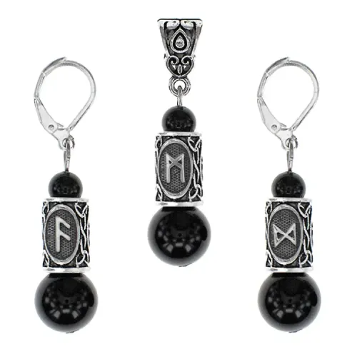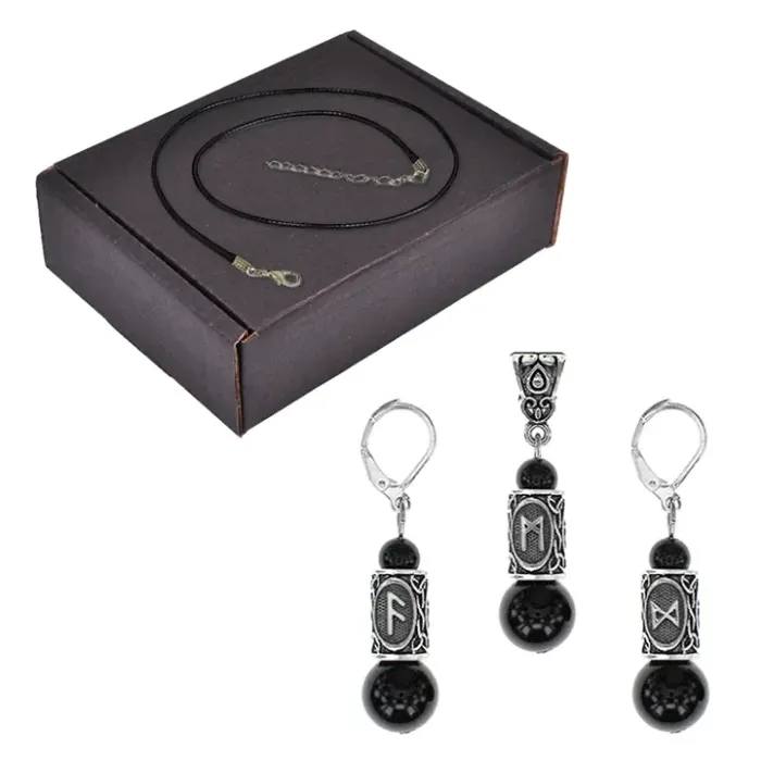 Назначение и особенности: Сувенирный комплект украшений. В коробке размещён QR-код с информацией о рунах Ансуз, Манназ, Дагаз.