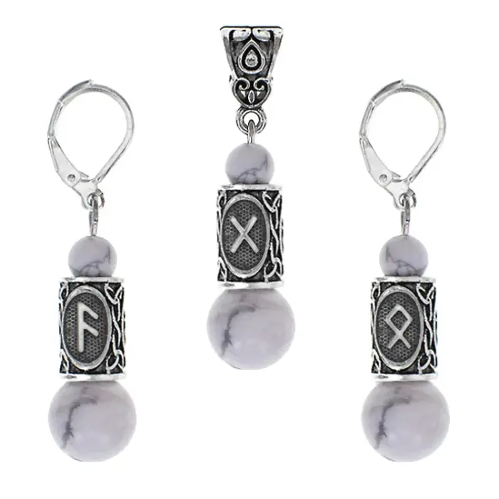 Назначение и особенности: Сувенирный комплект украшений. На этикетке указано значение скандинавских рун Ансуз, Гебо и Одал, доступное по QR-коду.