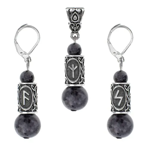 Назначение и особенности: Сувенирный комплект украшений. В коробке размещён QR-код со значениями скандинавских рун.